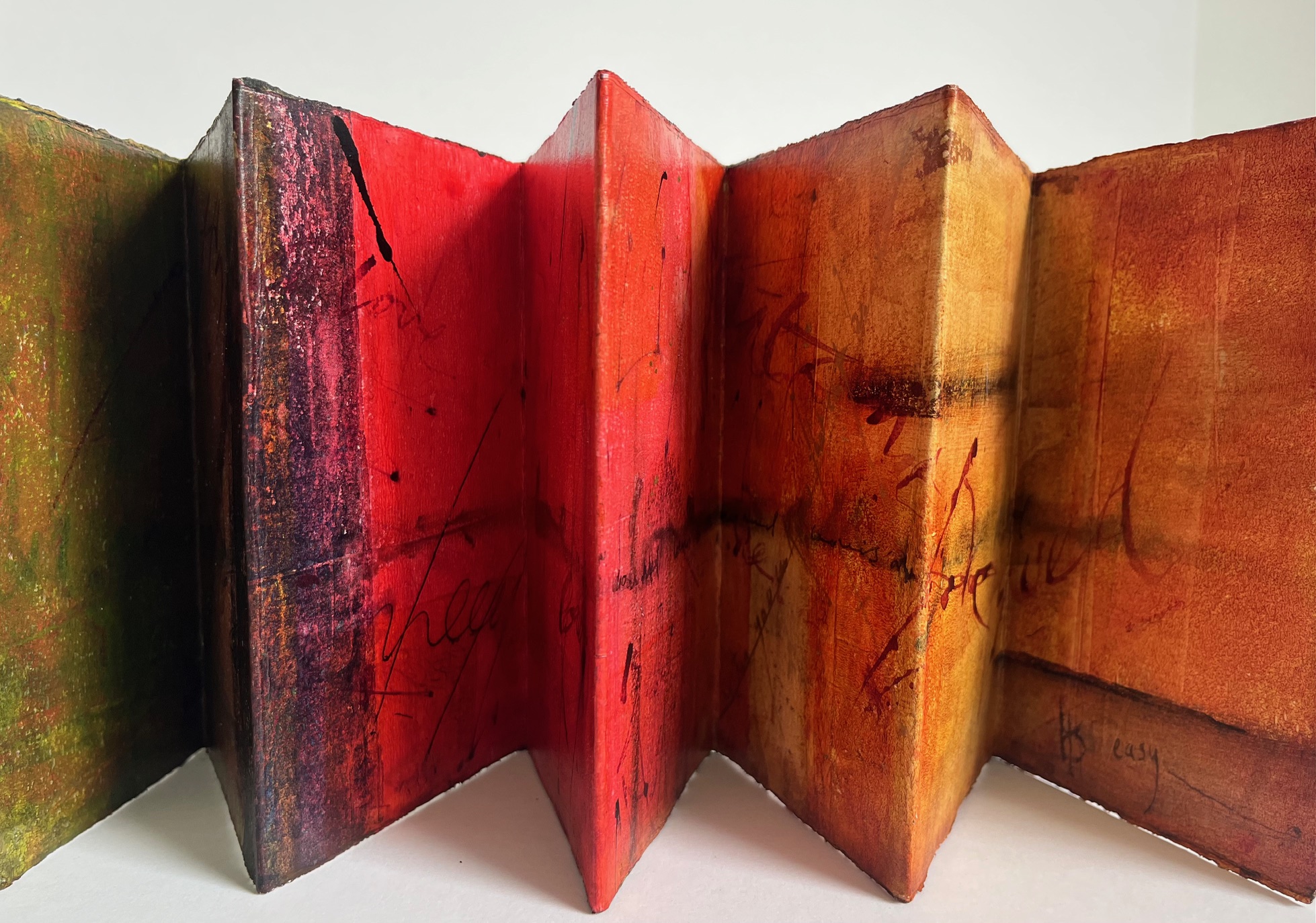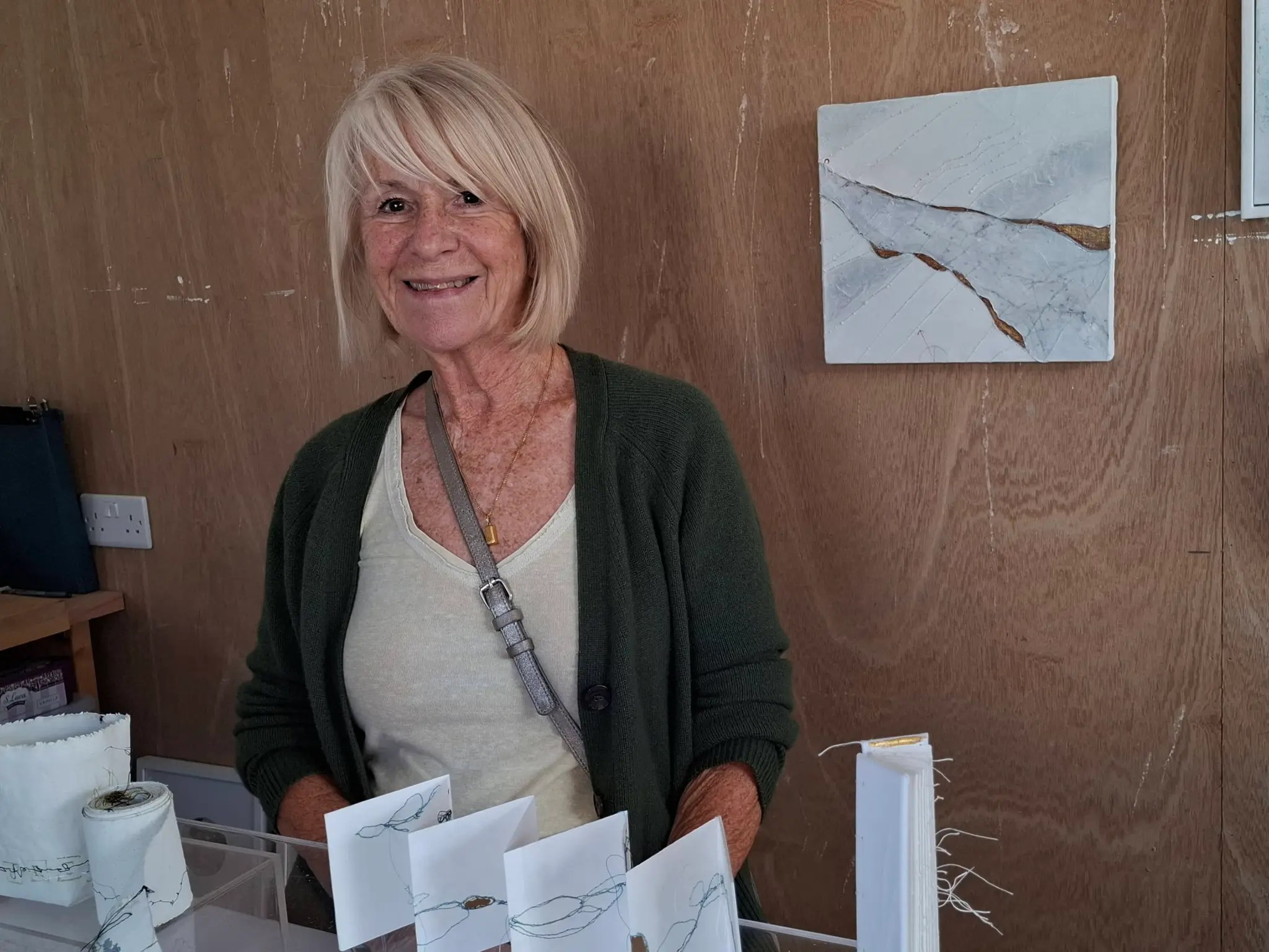 She was a prize winner at the Visual Arts Scotland centenary exhibition at the end of 2025, and her work has been selected for the Visual Arts Scotland members exhibition March – May 2026, she also shows her work with Upright Gallery, Edinburgh, and one of her books has recently been acquired by Edinburgh College library.