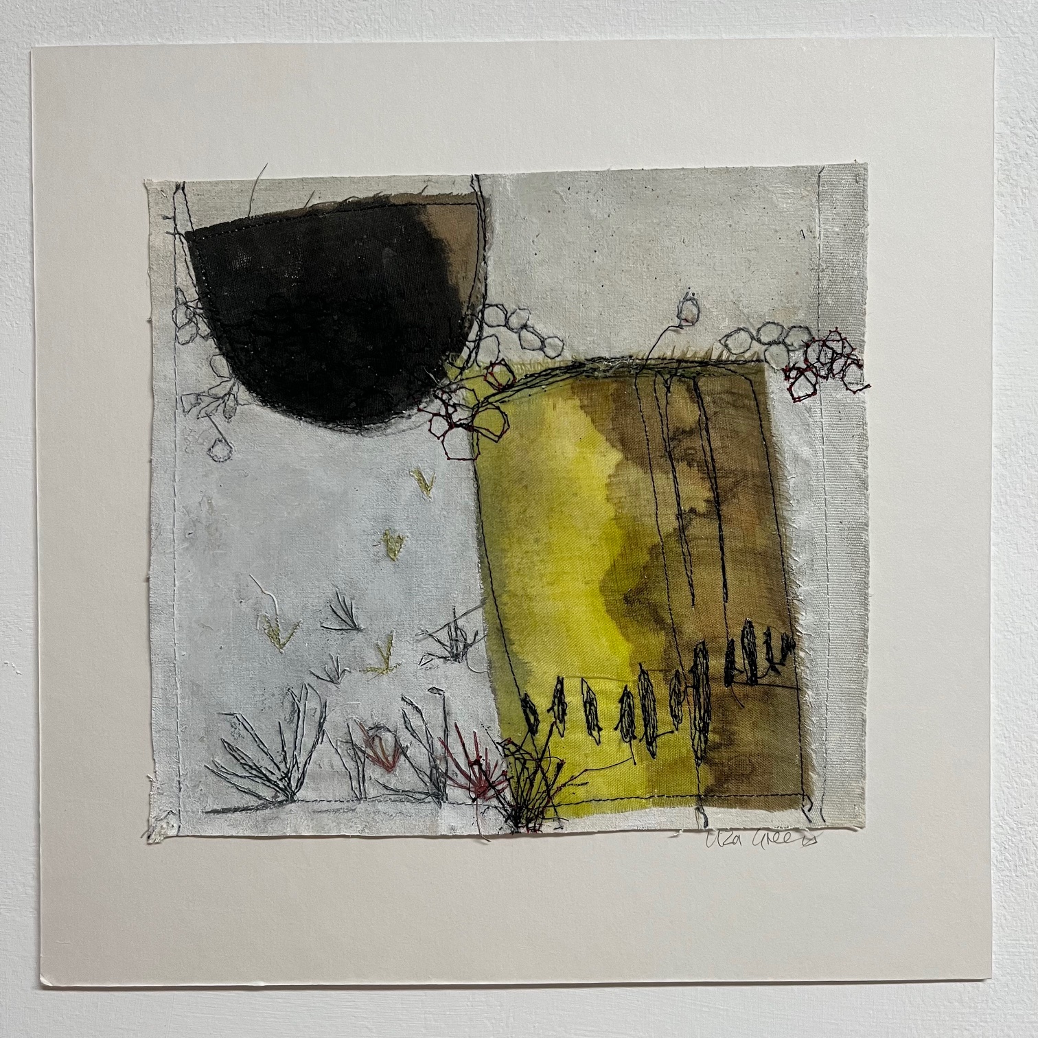 Liza works with a variety of mixed media textiles and paper, using dyes, prints and mark making techniques and produces both two and three dimensional pieces, and artist books. Recent work has focussed on the source of the Bonaly/Braid burn and the landscape and beaches of East Lothian.